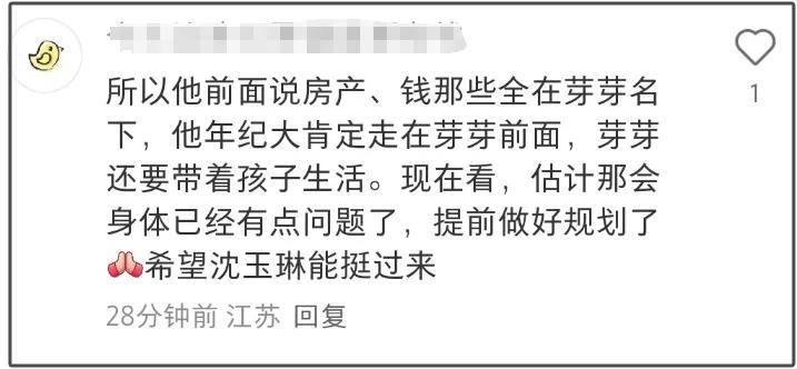 沈玉琳的工作不比陶晶莹和张栋梁轻松,而且因为与妻子17岁年龄差的缘故,他多次透露要好好赚钱,让母女生活轻松没有后顾之忧,几乎是常年无休的状态。他也曾在节目中称把房产和财产都放在老婆芽芽名下,毕竟自己肯定走在芽芽前面,芽芽还要带孩子生活,而今再看,有网友认为他是早发现身体状况,提前做好了规划。