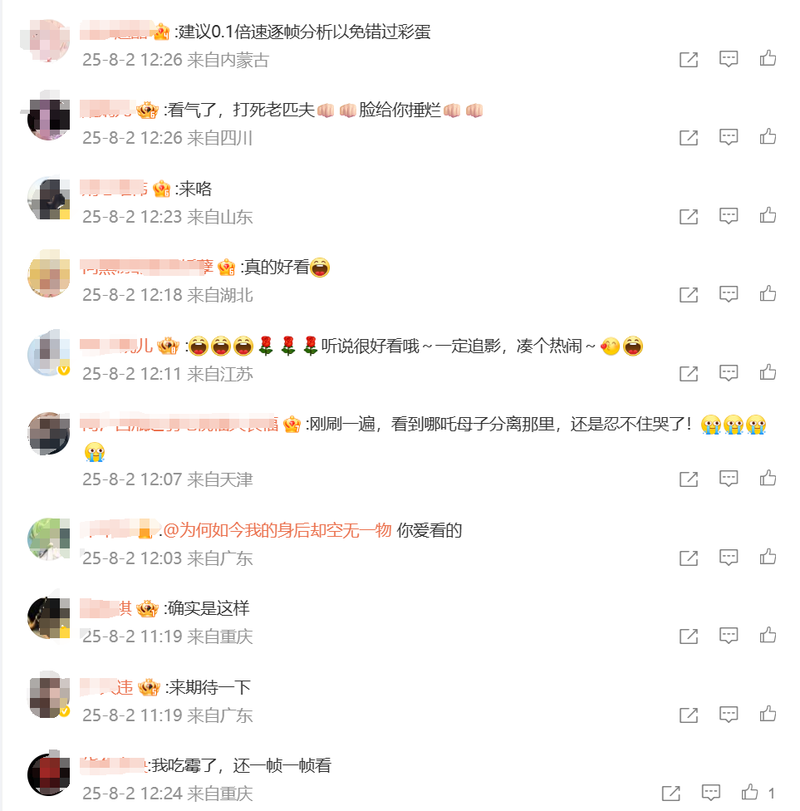 此前,《哪吒2》的导演饺子在接受采访及相关纪录片中展示了电影制作的大量细节,以及其中的多个“彩蛋”。此次电影全网上线,大量网友建议“逐帧分析”“一帧一帧看”“再看几遍”。