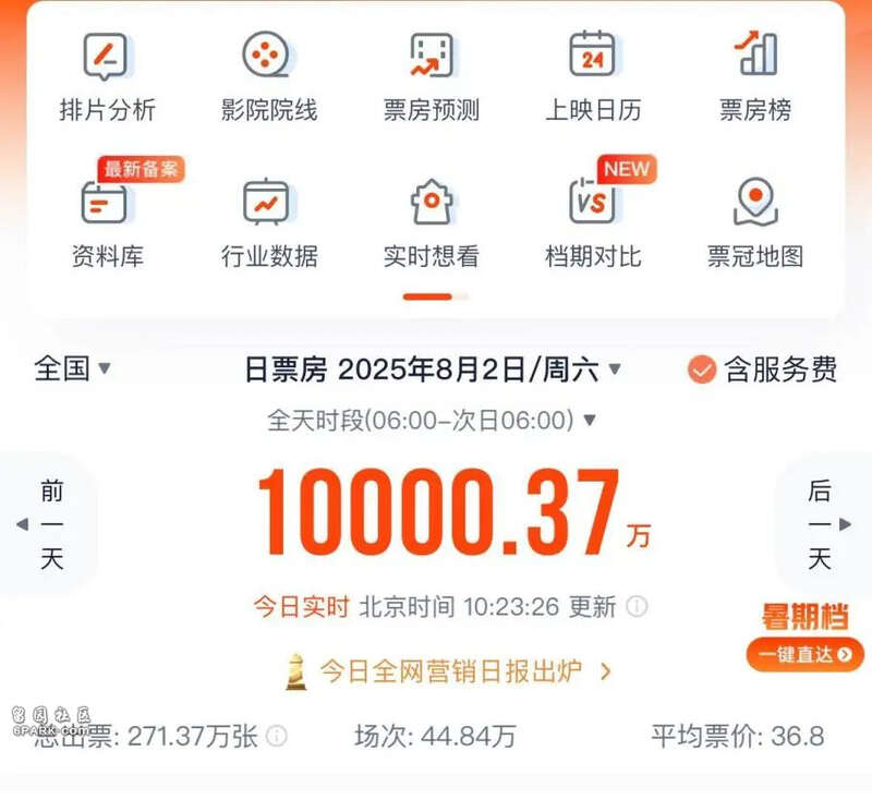 再来关注今年暑期档的票房情况。8月2日10点23分,不到四个半小时即实现日票房破亿元,刷新单日破亿最快纪录。