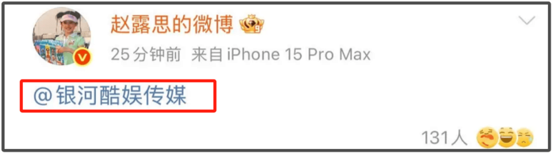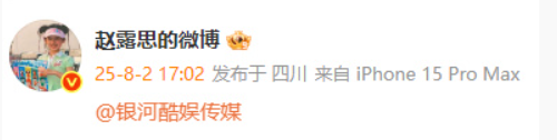 8月2日,@赵露思的微博 发布微博仅为“@银河酷娱传媒”的内容 ,引发网友热议。