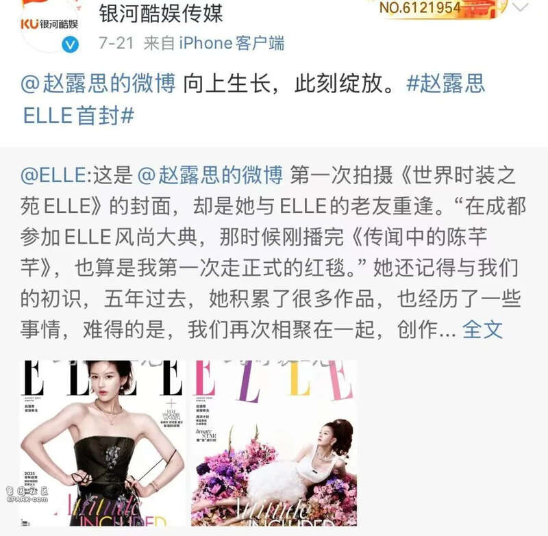 而锦观实验室记者搜索发现,银河酷娱最近发文是赵露思杂志封面,未有新的更新内容。