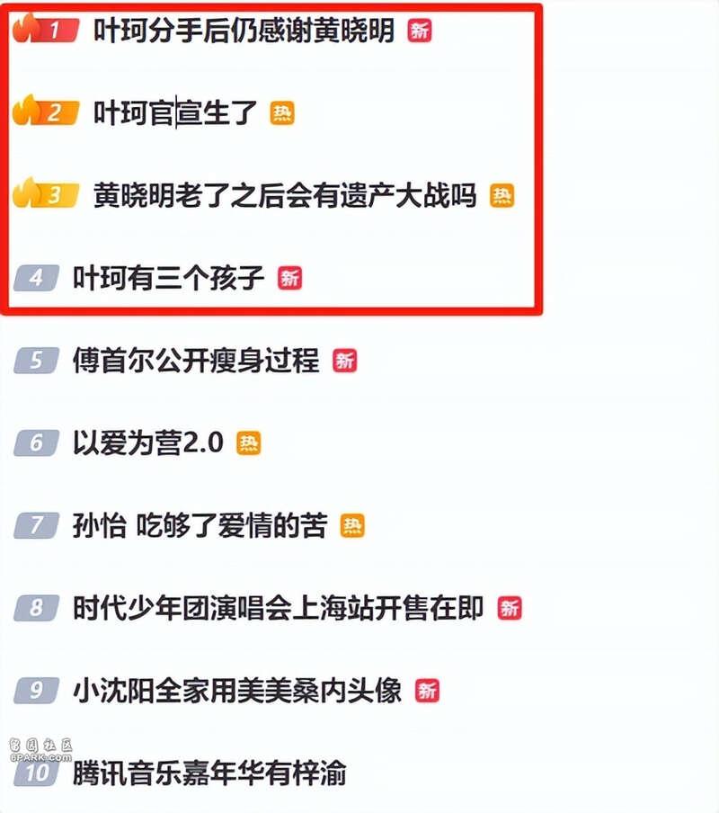 “叶珂分手后仍感谢黄晓明”、“叶珂官宣生了”、“叶珂有三个孩子”。