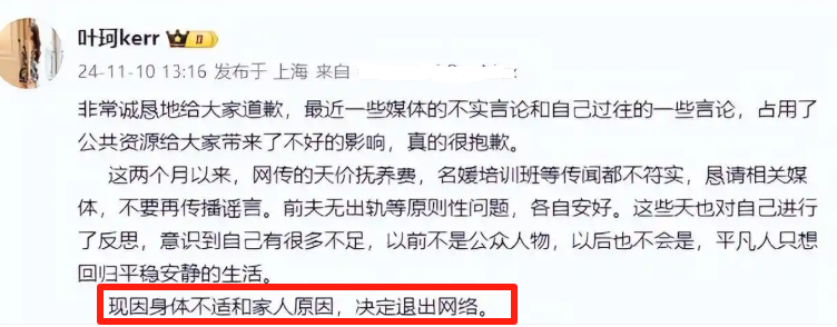 毕竟叶珂的前夫,此前也在网上发表过言论。