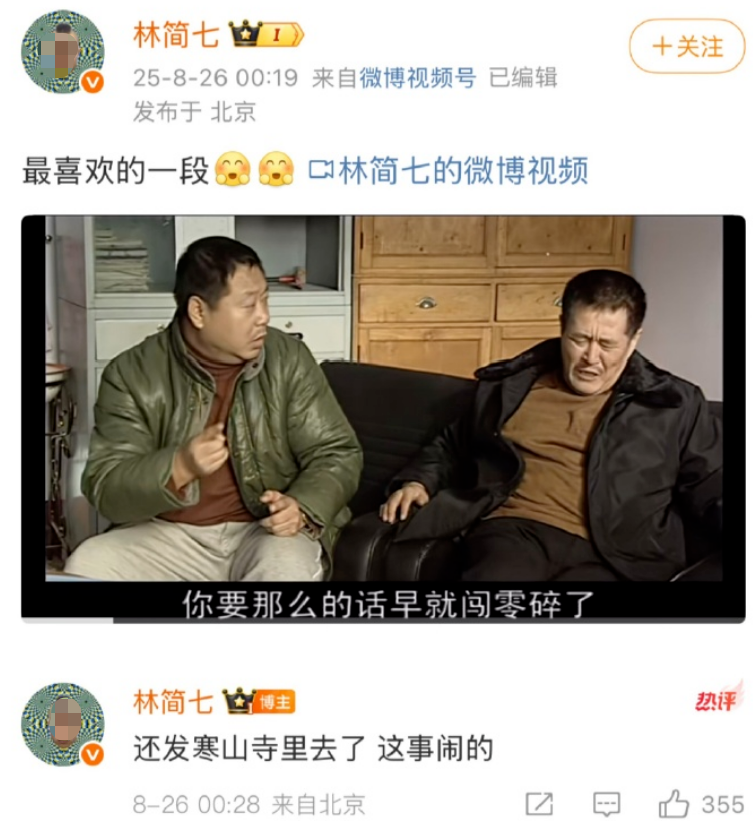 后来佳佳、吴鼎、黑灯也都发声了,最搞笑的是林简七,竟然还发到“寒山四(高寒和小四爷cp)超话”去了。