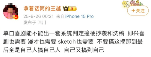 撞梗这事背后也暴露了单口喜剧现状,有利也有弊。有利是演员们一股脑的输出,能体现社会上的热门话题。