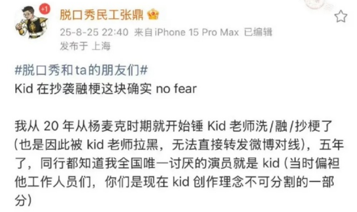 网传Kid是因为“抄袭”被笑果文化处罚禁演了,所以脱人们开团算实锤了?