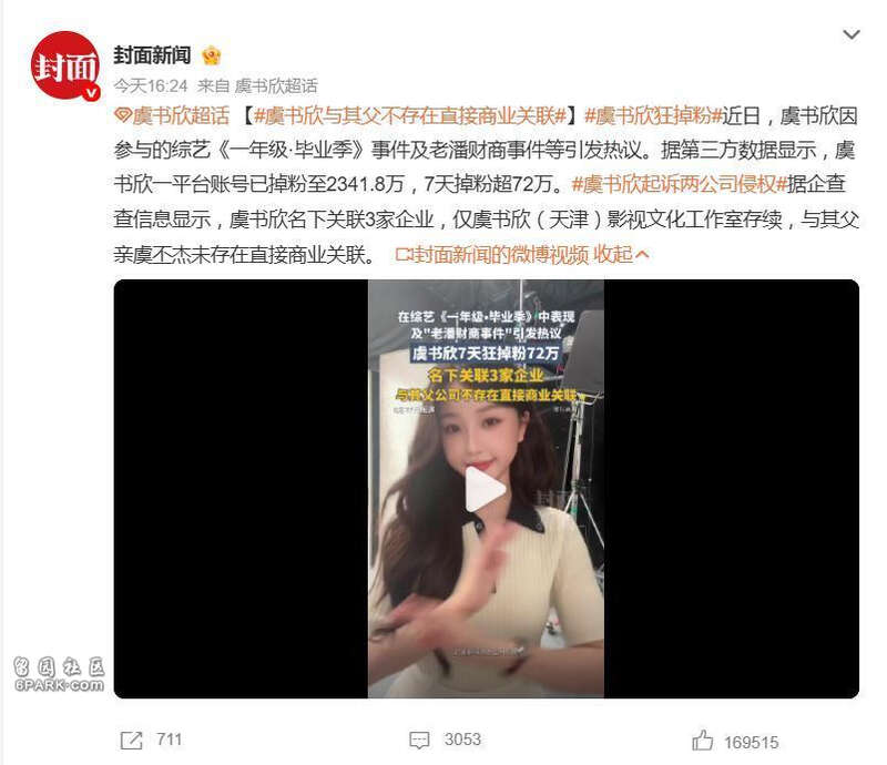 近日,艺人虞书欣因其父虞丕杰的过往商业行为及家族背景陷入舆论漩涡,相关话题持续发酵。有报道称虞书欣与父亲“无直接商业关联”,但这一说法引发网友热议,被指“避重就轻”,上演了一出现实版的“掩耳盗铃”。