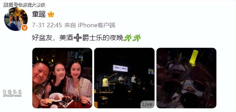 就在半个月前,童瑶曾发布一条博文,称自己和朋友在一起喝酒,夜晚听着爵士乐很惬意。