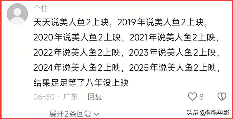 “天天说《美人鱼2》上映,结果足足等了八年没上映!”