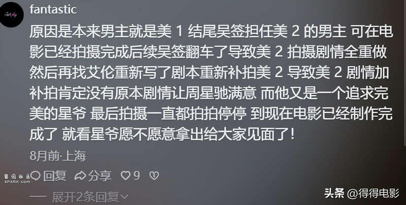 她在互联网上揭露电影不能上映的幕后真相,更是隔空对周星驰吐槽——