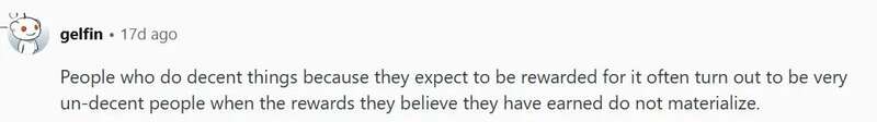“行事正派只为获得回报的人,一旦认为自己应得的回报没有实现,往往会露出非常不正派的一面。”