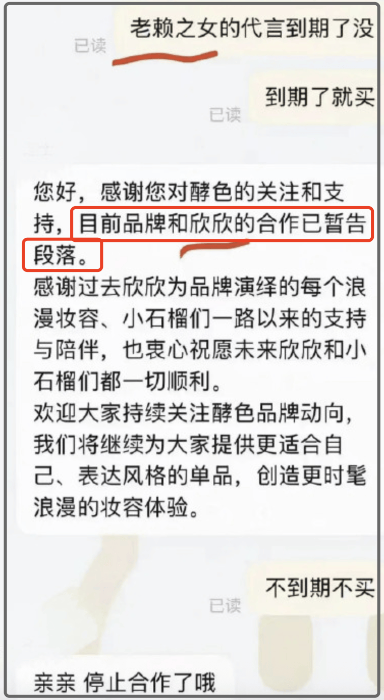 除此之外,还有品牌称与虞书欣的合作已经暂时告一段落。