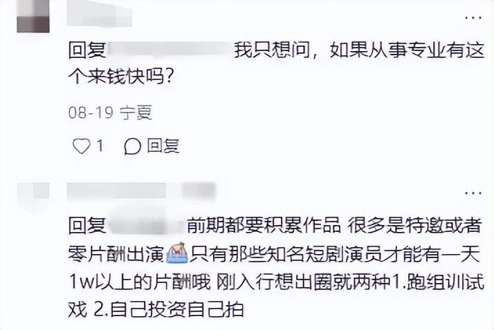 她直接大实话:“前期多数零片酬,要积累作品。”