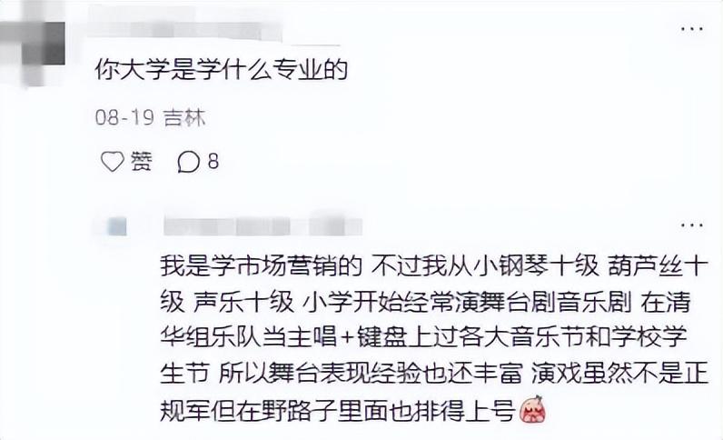 钢琴、声乐都十级的袁博士,自称也是清华各大音乐节舞台上的常客。暑假经人介绍,进组拍摄短剧《星城棋缘》。