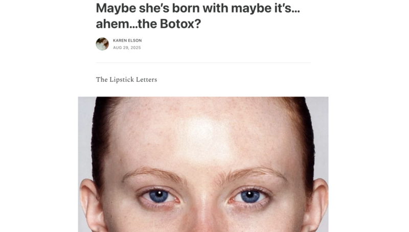 事情是这样的,46岁的凯伦最近在Substack上发了一篇文章大胆自曝,坦言自己为了对抗衰老,尝试了不少医美项目,结果…很多项目不仅没让她变美,反而差点毁容。