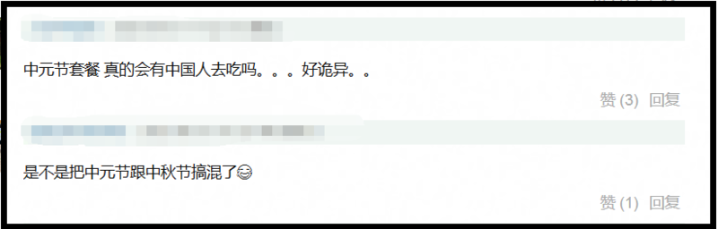 邝记发布的海报很有争议性,上面写着硕大的“中元节”三个字,周围还悬挂了红灯笼,并配上“将美味与吉祥传递给家人”的字样,给人一种庆祝中元节的感觉。