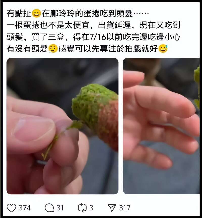可惜,粉丝的爱这么拿得出手,邝玲玲在走红后却屡屡闹出负面新闻,尤其在食品方面曾经大翻车。邝记旗下的一款蛋卷,此前被曝没有许可证,属于“三无产品”,还有顾客在蛋卷里吃到过头发。