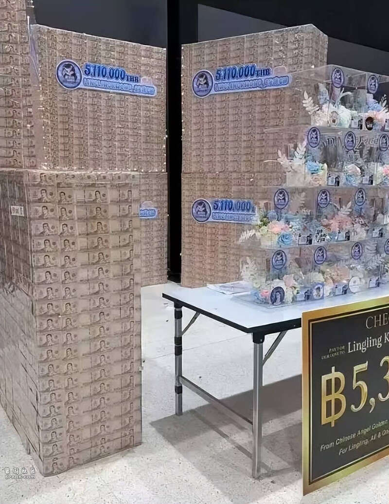 粉丝得知后很心疼,于是在邝玲玲2025年过生日之际,粉丝集体募捐了400万现金和400克黄金,分批多次带到泰国,在生日会现场堆起“金山银山”送给偶像。