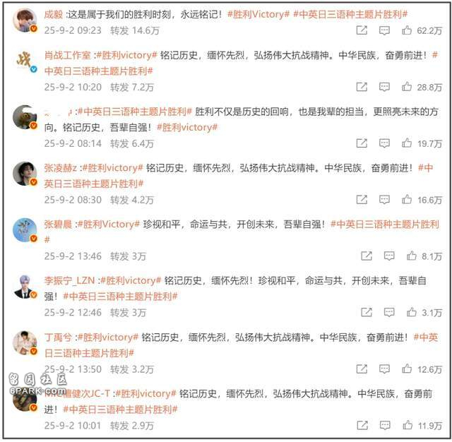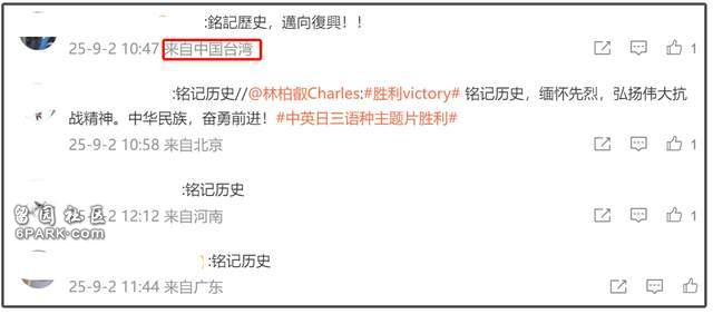 林柏叡作为首个转发抗战相关内容的台湾省艺人,也带动了不少粉丝转发。