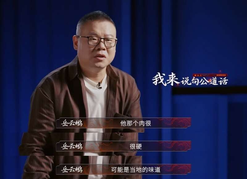 代表大众评审的岳云鹏观点相似,也觉得肉质有些硬,不过岳云鹏也补充表示可能这是当地的风味(不太适合他)。