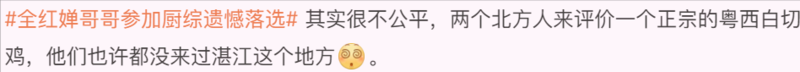 他备采中直接内涵评委们鉴赏能力有限,习惯了吃短期成长的速成鸡,所以不懂广东本土鸡的美好,并力挺广东鸡YYDS。