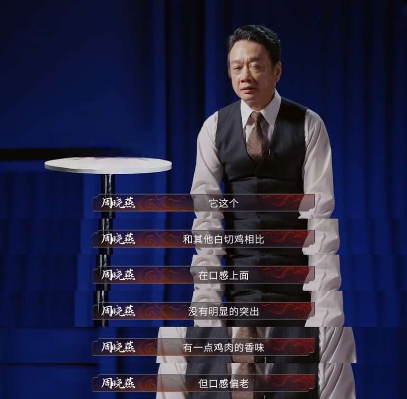 行业评委周晓燕觉得口感老,但他并没有很精准地讲出白切鸡这道菜应该有的口感是什么样的,仅针对老与嫩的描写,很容易产生误会。
