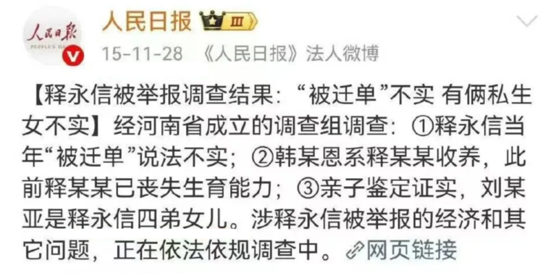 而且不仅没人相信,当时举报释永信的那个僧人,还被反诬有多名妻子、背叛师门: