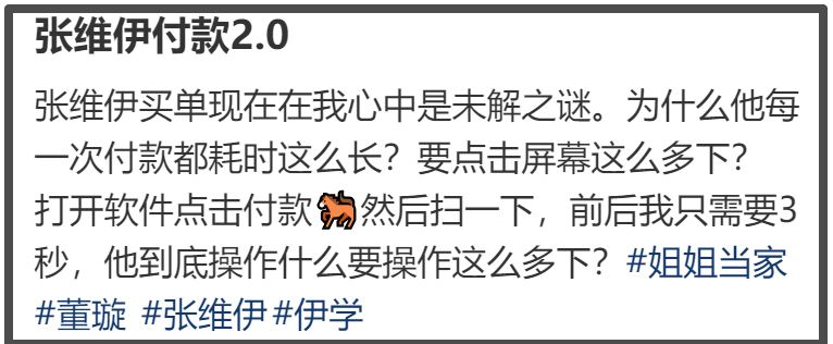 网友也是忍不住发问,张维伊为啥每次付款都那么慢,难不成在领优惠券?