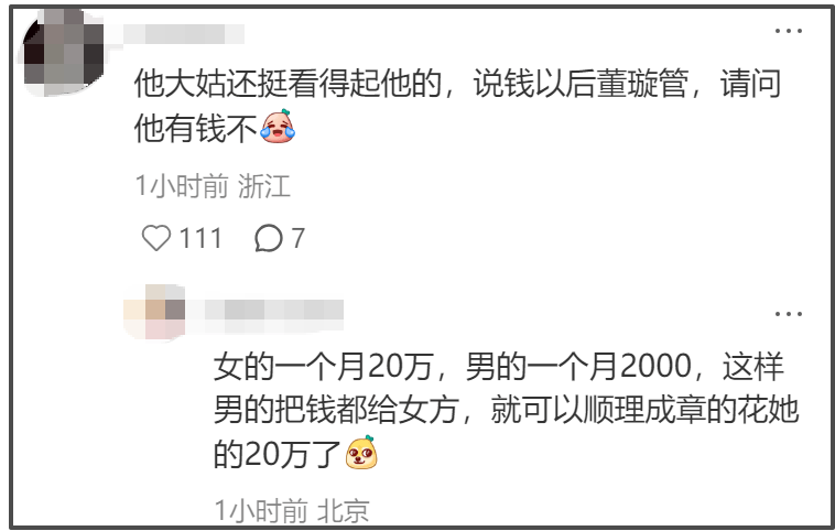 也是让人忍不住感叹,这时候要是性别一换,估计又有人要大喊“捞女”了。