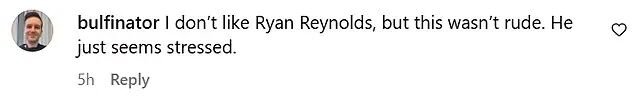 “我不喜欢瑞安·雷诺兹,但这不粗鲁。他只是看起来很紧张。”