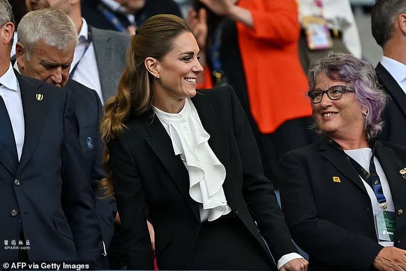为“英格兰红玫瑰”加油的凯特,看上去喜气洋洋,笑得那叫一个灿烂。凯特于3年前从小叔子手中接过了英格兰橄榄球王室赞助人的职位,哈里王子因“梅脱”协议而被迫放弃。