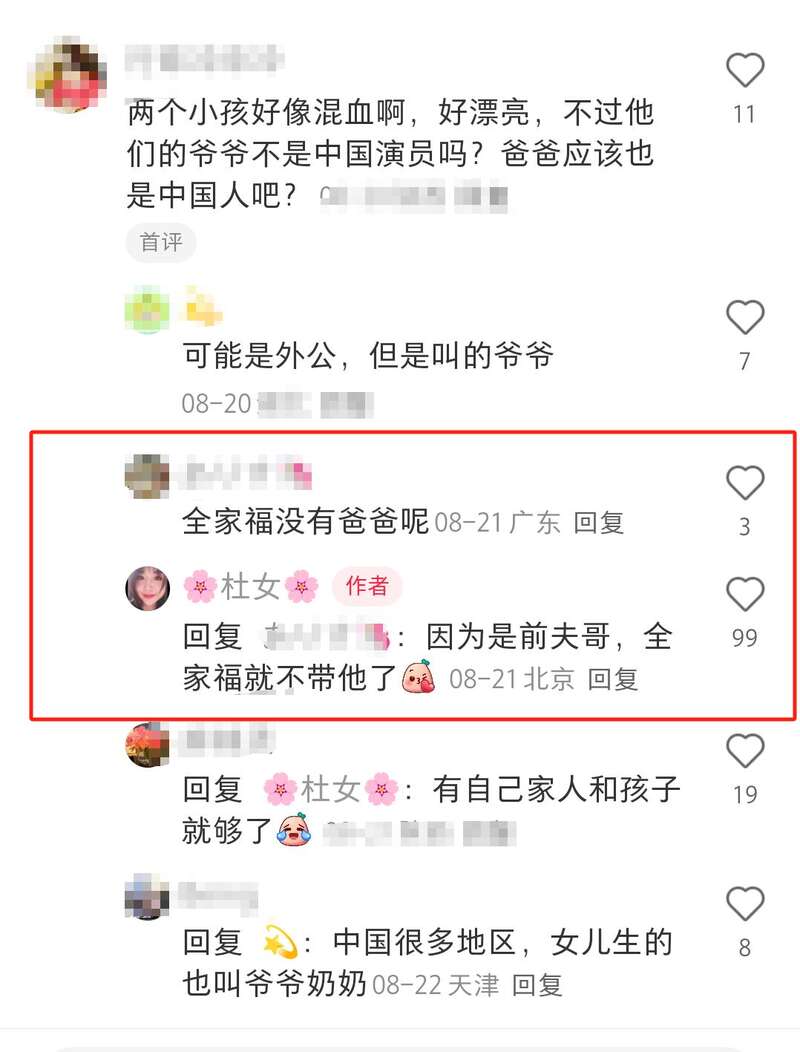 68岁的杜源依旧活跃在电视荧幕前,不拍戏是带带孙子孙女,孩子都围绕在身边很是幸福。此前,杜源的女儿曾在社交平台上晒出与儿女的亲子照,有网友好奇留言全家福为什么看不到孩子爸爸的身影,而她本人也在评论区回复表示:“因为是前夫哥,全家福就不带他了”。