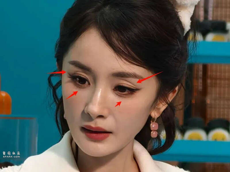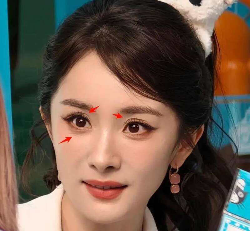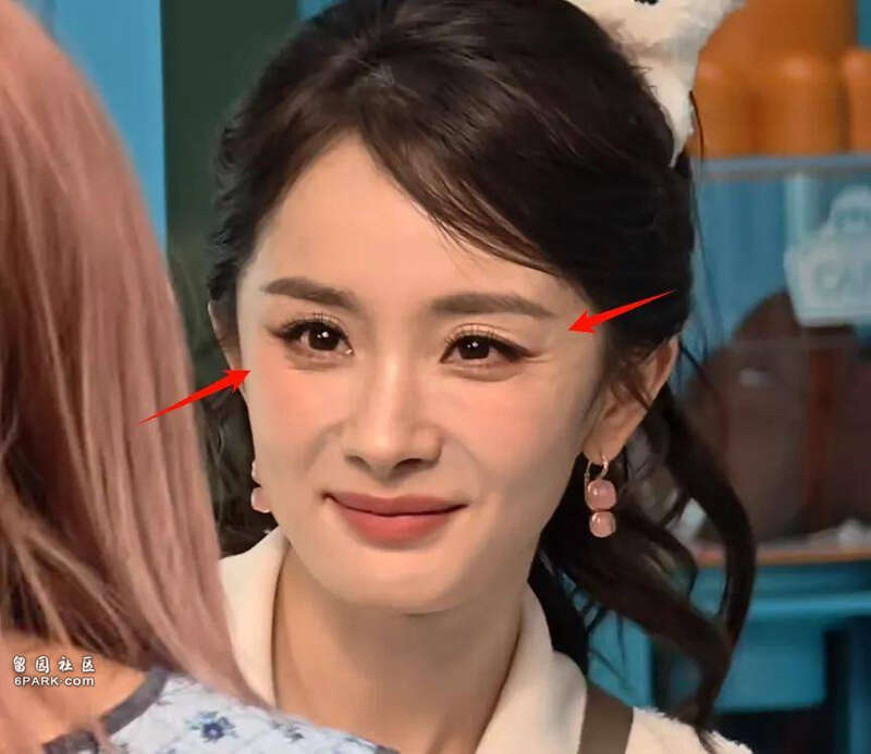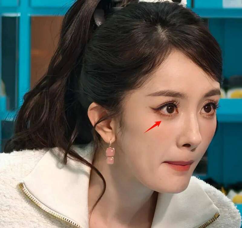 似乎还因为贴了双眼皮贴的原因,杨幂的眼皮都被挤出了凹陷,“三眼皮”重出江湖,眼周皮肤有点儿松弛了。
