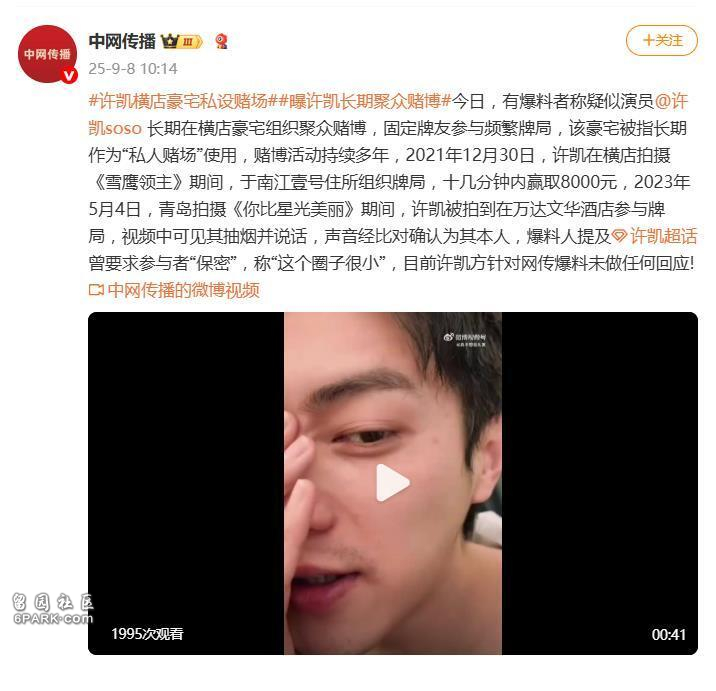曝许凯长期聚众赌博,横店豪宅成“私人赌场”