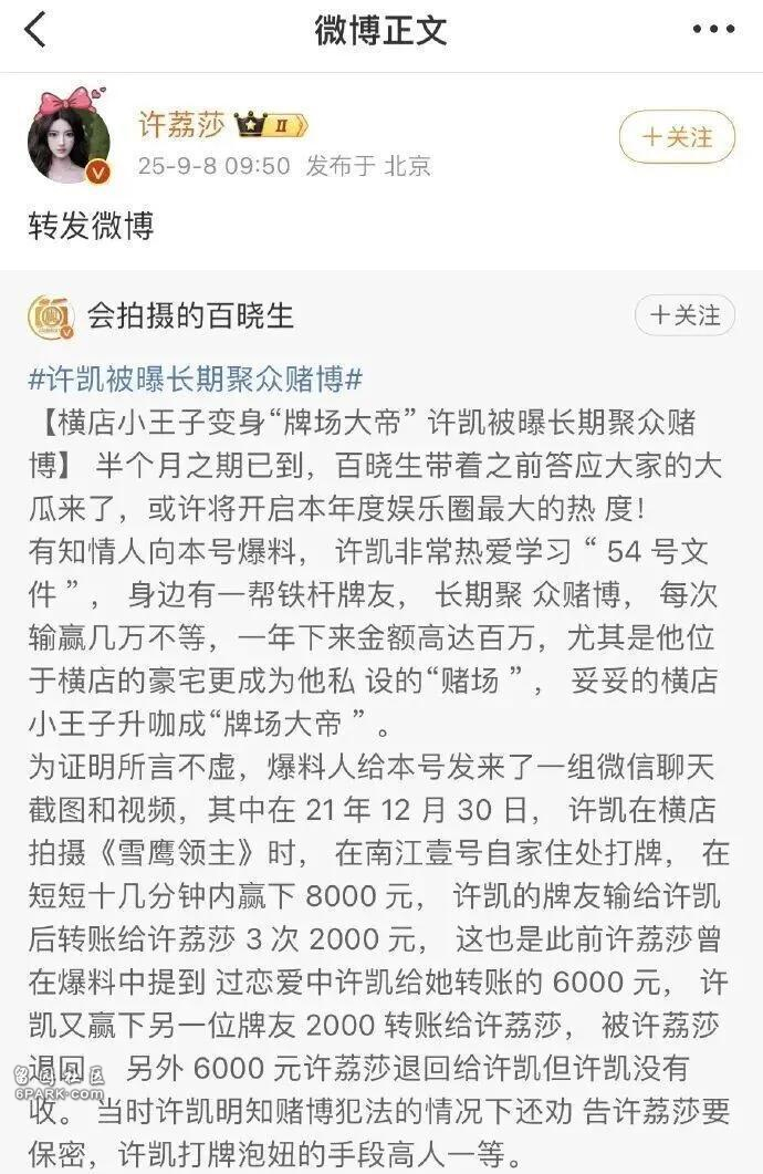 本次新爆料的内容为许凯长期在横店豪宅聚众赌博,且持续多年。