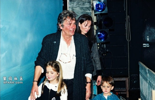 阿兰·德龙与罗莎莉·范·布利蒙及他们的两个孩子
