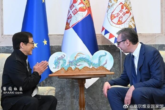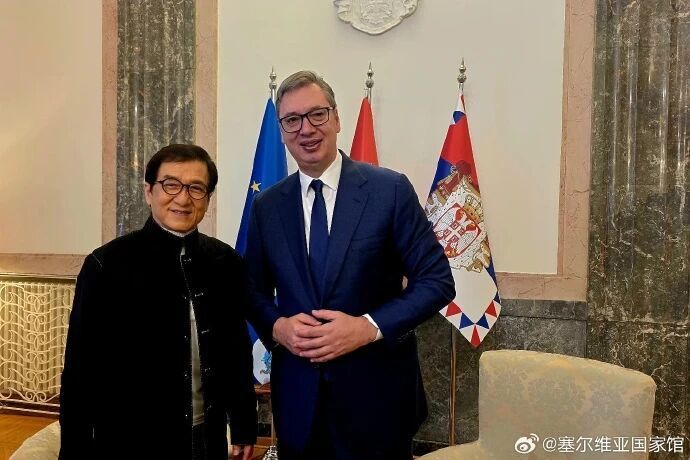 近日,塞尔维亚总统武契奇会见成龙。成龙表示,“总统先生,能来这里是我的荣幸,我刚在天安门广场看到您。” 武契奇回应称那是一段很棒的访华之旅。
