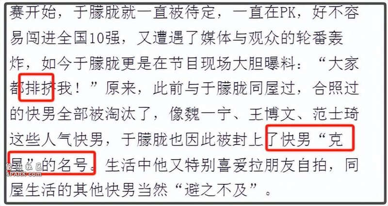 而回顾于朦胧的演艺生涯,其实也承受了不少负面压力。在2013年参加《快男》时,因长相出挑开玩笑自嘲被其他选手排挤。因为跟他合照的男选手都被淘汰了,还收获了“克星”称号。
