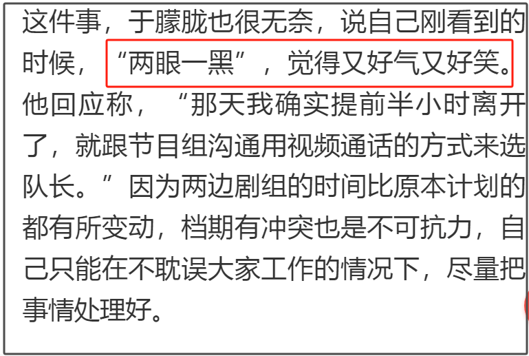 2019年,在拍摄《两世欢》时,于朦胧眼睛被道具戳伤血流不止,事后他回应小伤并感谢剧组,从这也能看出他为人温和。而同年,他被人造谣带资进组,经纪人怒怼堂堂正正拿到角色,本人则未发声。