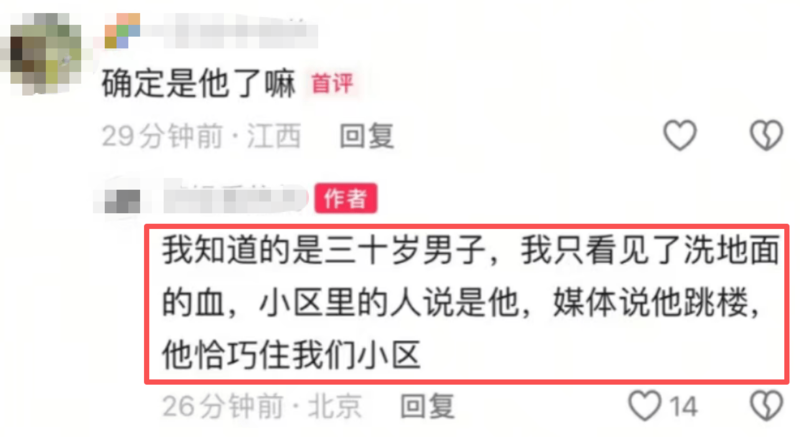 除了狗仔爆料外,也有北京IP的网友用缩写的方式发文“YML跳楼自S,等着热搜”爆料。而该网友的发布时间比狗仔要早,不知是不是知情人。另外一位四川的网友也在于朦胧的社媒评论区留言称“他已经去天堂了”。