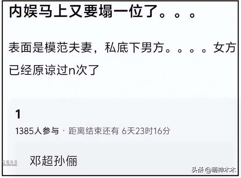 近日,网络屡传“国民女星后院起火”,紧接着那英丈夫被拍夜会美女,当事人迅速辟谣,不到一天流程走完。此后又有爆料称,其实真正后院起火的女星另有其人,俩人表面“模范夫妻”,其实私下男方出轨多次,目标直指邓超孙俪。