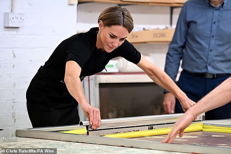在获得邀请之后,凯特尝试了如何在家居布料上印制花纹。脱掉西装外套的凯特,展示“纸片人”身姿,虽然苗条是大多数女性所推崇的,但显然凯特有些过于消瘦了。