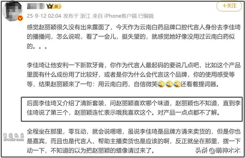 介绍品牌新款产品,赵丽颖一句好话说不出来,只能看着提词器已读乱回;代言牙膏产品,安排赵丽颖介绍刷牙方法,文字版摆在眼前了,结果读得磕磕绊绊;连选个喜欢的牙膏口味,都要等李佳琦走流程,听到关键字才回应。