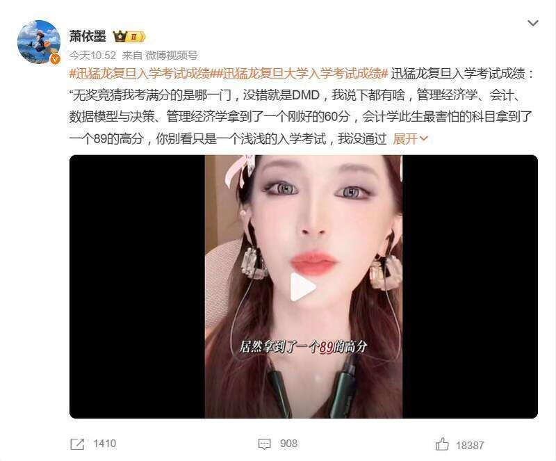 正如网友所言:“当你还在嘲讽网红只会炒作时,人家已经卷到了复旦满分。” 这场从直播间到复旦教室的跨界,或许正是新一代内容创作者对身份焦虑的正面回应:流量会褪色,但学历和知识不会。