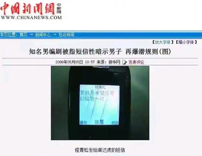 2008年时,一位叫龚达虎的年轻人和记者爆料说,他和程青松因为《超级女声》相识,经常在网上聊天,随后成了朋友。