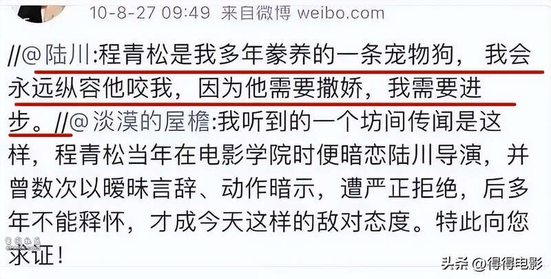 在当年求学时期,就被爆料程青松暗恋陆川,但被陆川拒绝,让程青松怀恨在心,把《南京南京》列为了第一届“最令人失望电影”,而陆川本人也是第一届金扫帚奖“最令人失望导演”的获得者。