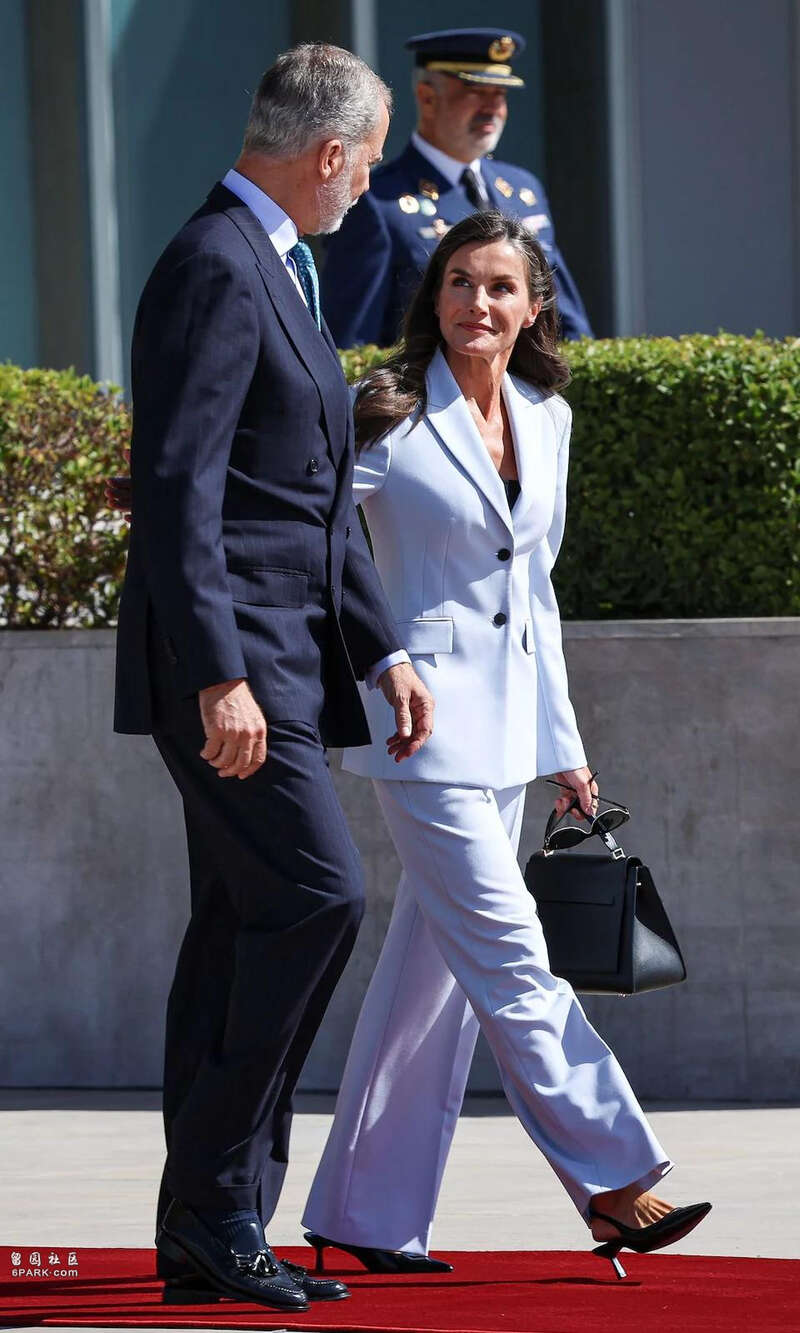 莱蒂齐亚和费利佩是当天早些时候从马德里出发抵达开罗的。出发时,莱蒂齐亚选择了一身浅色的西装,显得颇为飒爽,很有“职场女精英”的感觉。