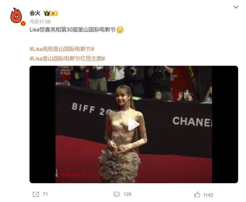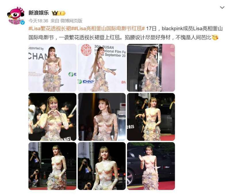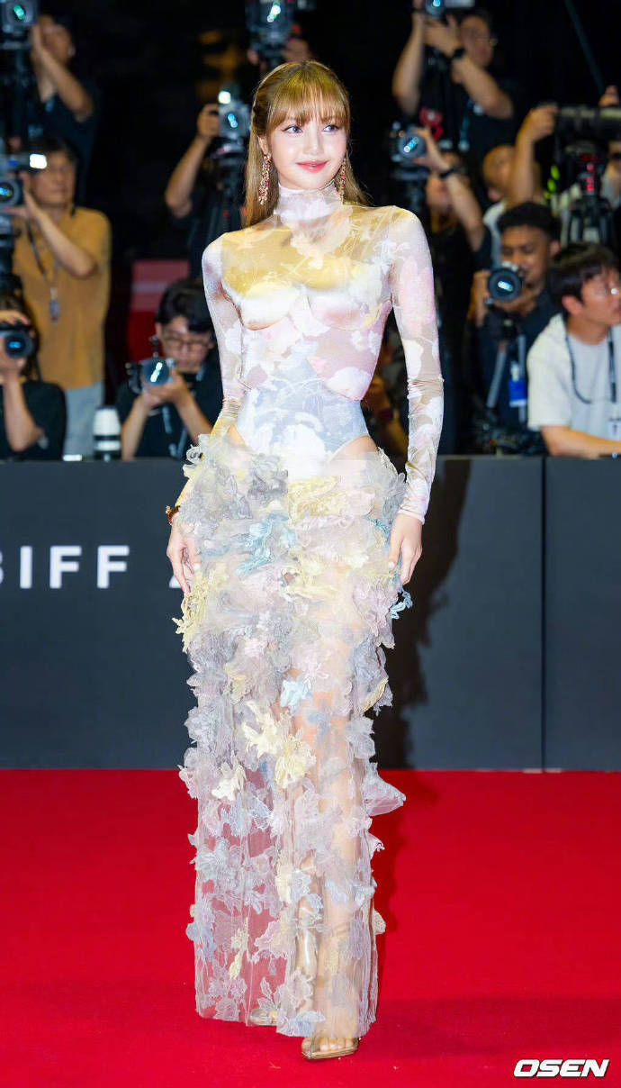 Lisa亮相釜山国际电影节 繁花镂空透视长裙吸睛(组图)
