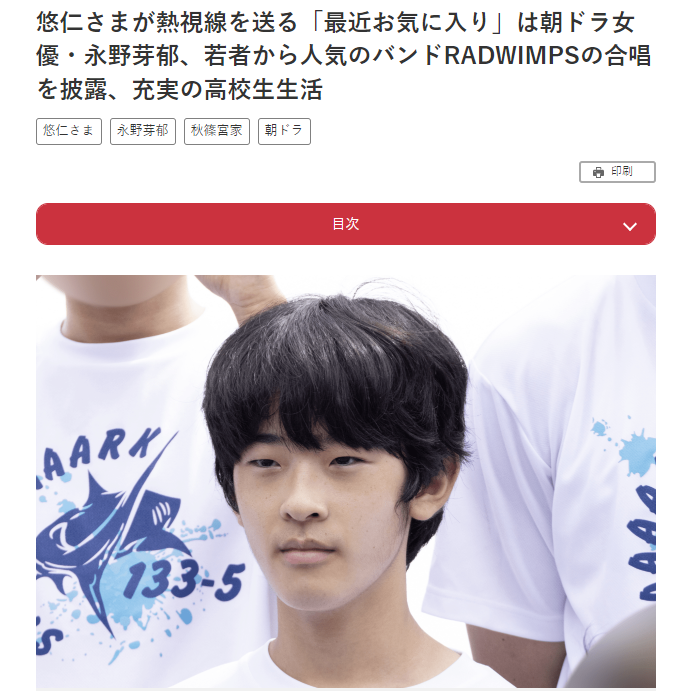 据说悠仁殿下自从2018年看了永野芽郁主演的《一半蓝色》后,就深陷对方温柔可爱的魅力,开启了“追星”模式。自此以后,只要是永野芽郁出演的电视或综艺,悠仁殿下都会提前守在电视机前,生怕错过了一点。
