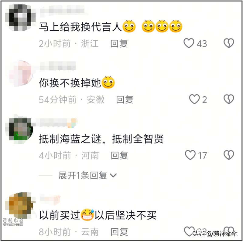 网友纷纷要求终止合作,更换代言人,包括海蓝之谜、伯爵、科沃斯、LV等,评论区全是抵制的声音,网友态度一致——不换代言人,就换品牌。